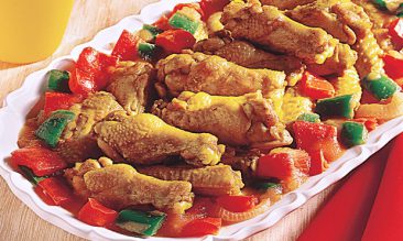 1 kg de drumet de frango· 5 dentes de alho · 1 colher (sopa) de sal · 1/2 colher (sopa) de açafrão-da-terra · 1/3 de xícara (chá) de óleo · 1 xícara (chá) de água Molho: · 1 pimentão verde médio · 1 pimentão vermelho médio · 1/4 xícara (chá) de azeite · 1/4 colher […]
